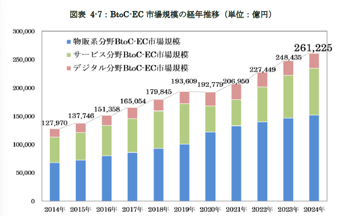 こうした変化を裏づけるように、日本のEC市場は令和6年度も拡大を続けています。