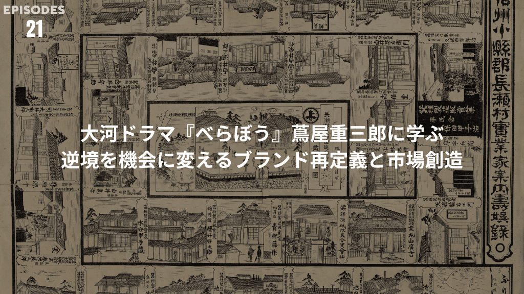 2025年放送の大河ドラマ『べらぼう 〜蔦重栄華乃夢噺〜』は、江戸時代の出版文化を牽引した蔦屋重三郎の人生を描きながら、商業や広告の変遷、そして時代の変わり目に求められるビジネスセンスを見事に映し出し...